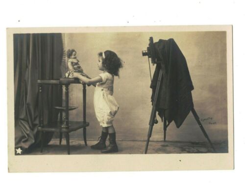 Title (ebay affiliate link): MD2351 LITTLE VICTORIAN GIRL TAKING A PHOTO WITH VINTAGE CAMERA OF HER DOLL