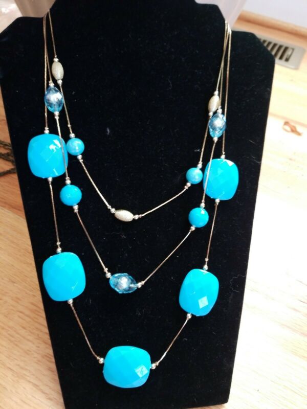 Title (ebay affiliate link): Necklace women vintage blue with gold toned 3 strands 15 inches