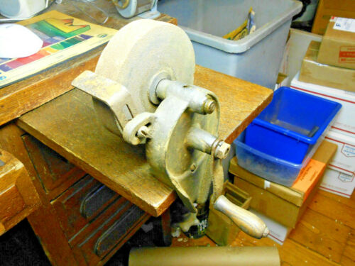 Title (ebay affiliate link): Antique Vintage Cast Iron Hand Crank Bench Mount Grinder Knife Sharpener Tool