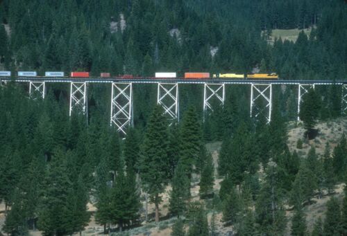 Title (ebay affiliate link): Original Kodachrome Slide of UP Freight on the Clio Viaduct on the former WP