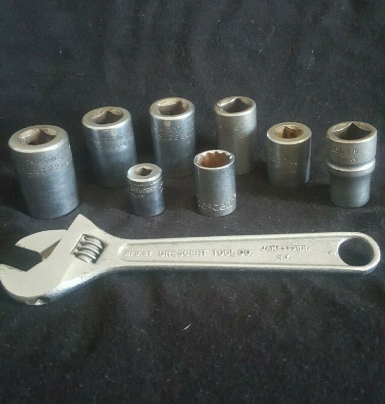 Title (ebay affiliate link): VINTAGE CRESCENT 6" WRENCH AND SOCKETS MADE IN USA JAMESTOWN NY