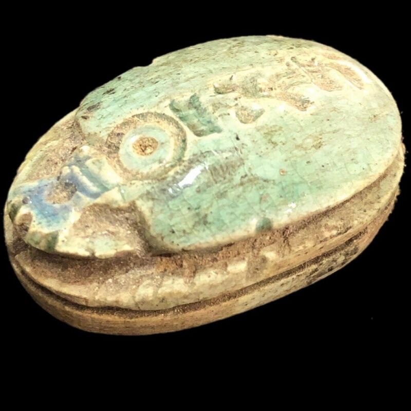 Title (ebay affiliate link): BEAUTIFUL ANCIENT EGYPTIAN BLUE GLAZED SCARAB 300 BC (2)