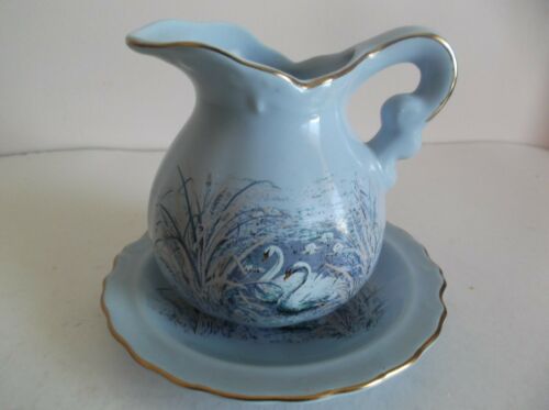 VINTAGE BELINA CERAMIC JUG / PITCHER WITH PLATE - SWANS