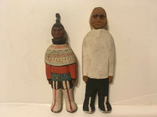 LOT OF VINTAGE NATIVE HAND CARVED WOOD INDIAN TOW MAN