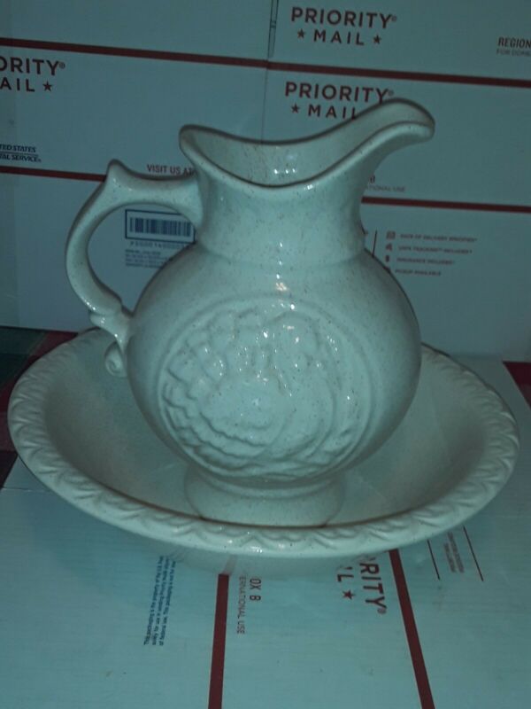 Antique Wash Water Pitcher & Basin Bowl Matching Set/Stamped 7516 USA on Bottom