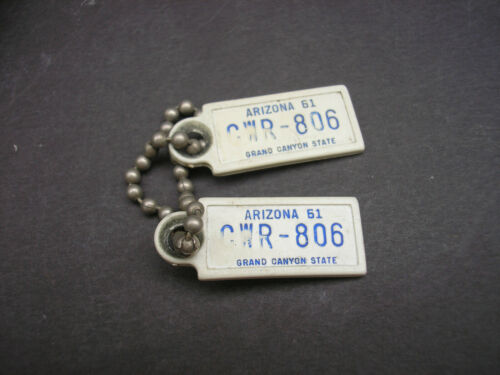 Title (ebay affiliate link): Vintage 1961 ARIZONA DAV Mini License Key Chains - Pair