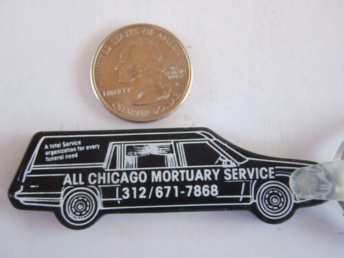 Title (ebay affiliate link): VINTAGE HEARSE ADVERTISING KEY CHAIN FOB CHICAGO MORTUARY SERVICE FUNERAL PARLOR