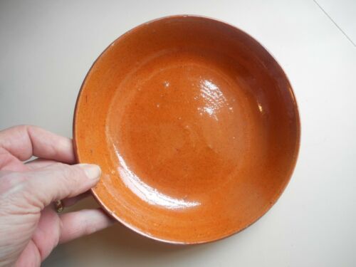 Title (ebay affiliate link): Antique 19th C. Pumpkin glaze Redware Pie Plate. Beautiful Red Ware Oven Dish