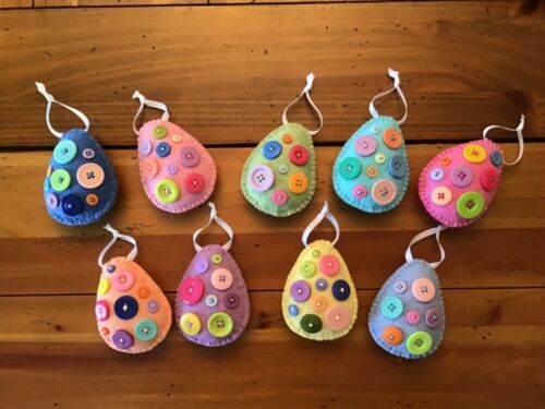 Title (ebay affiliate link): PRIM WOOL FELT ORNIES BOWL FILLERS SET OF 9 EASTER EGGS DECORATED WITH BUTTONS