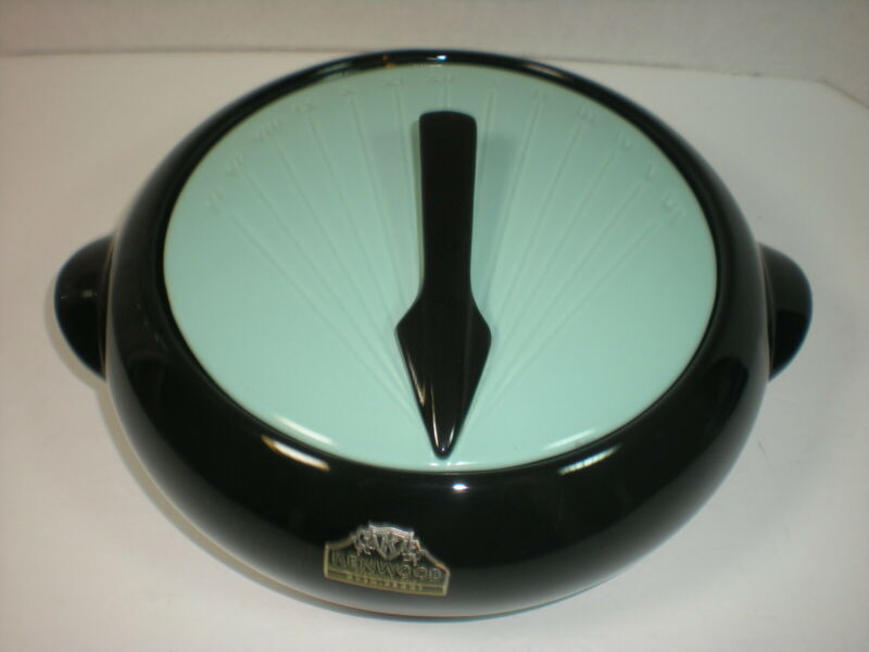1950''s Kenwood Covered Casserole Dish SUNDIAL design Black Turquoise UNUSED