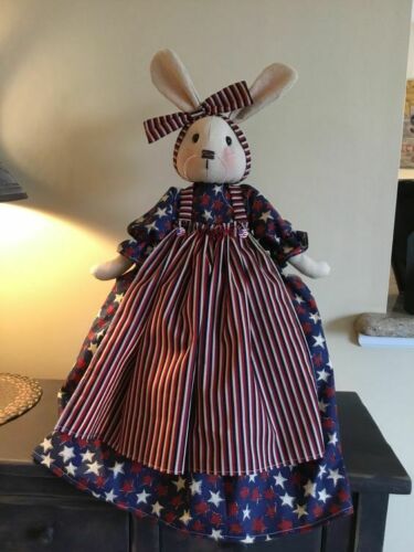 PRIMITIVE RAGGEDY PATRIOTIC AMERICANA PRIM BUNNY RABBIT DOLL