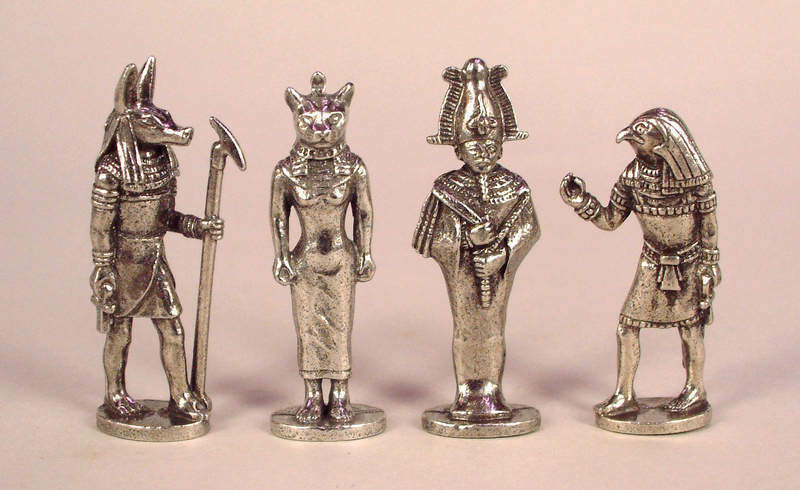 Four Egyptian God Amulets in Fine Pewter - Anubis, Bast, Horus, Osiris