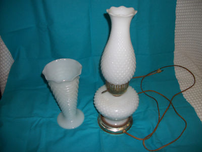 Vintage Lot Hobnail Milk Glass Lamp Vase Antique Fenton