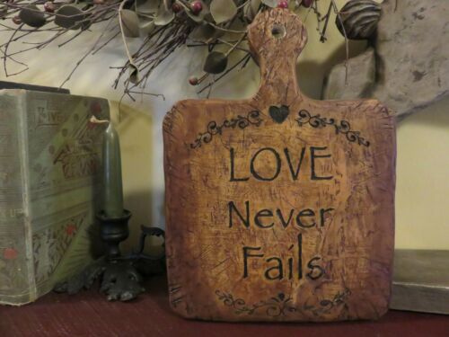 Title (ebay affiliate link): Primitive Treenware Cutting Board with Handle-LOVE NEVER FAILS-USA Made