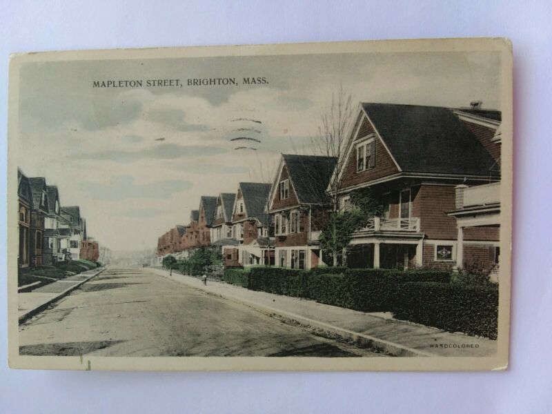 Title (ebay affiliate link): Brighton Massachusetts Mapleton Street View c1915 Handcolored Postcard