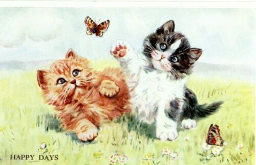 VINTAGE ART postcard: CATS by MABEL GEAR - HAPPY DAYS cats & butterflies 5453