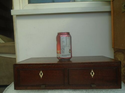 Lovely antique wooden 2 drawer cabinet with ornate bovine bone escutcheons LOOK