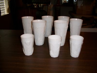 INDIANA MILK GLASS 9 PIECE HAVEST GRAPE SET