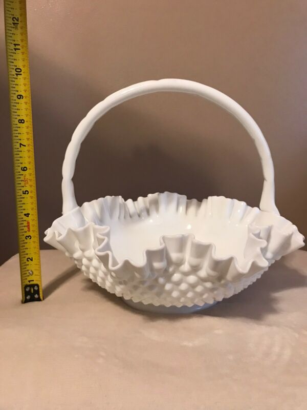 Title (ebay affiliate link): Vintage Fenton Large Milk Glass Hobnail Double Crimped Edge Basket