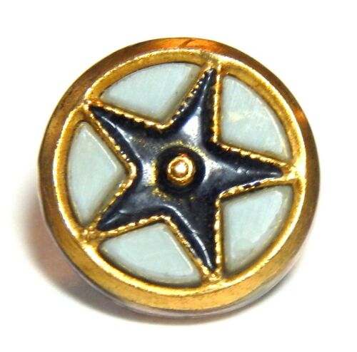 ANTIQUE GILT BRASS GENT''S WAISTCOAT BUTTON w/DIVIDED MILK GLASS JEWELED STAR