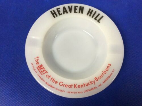 Vtg USA Milk Glass Ashtray Heaven Hill The Best of the Great Kentucky Bourbons