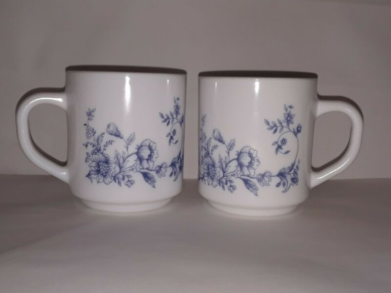 Title (ebay affiliate link): Vintage Arcopal Glenwood France Coffee Cup Mugs 2 White Blue Floral Milk Glass