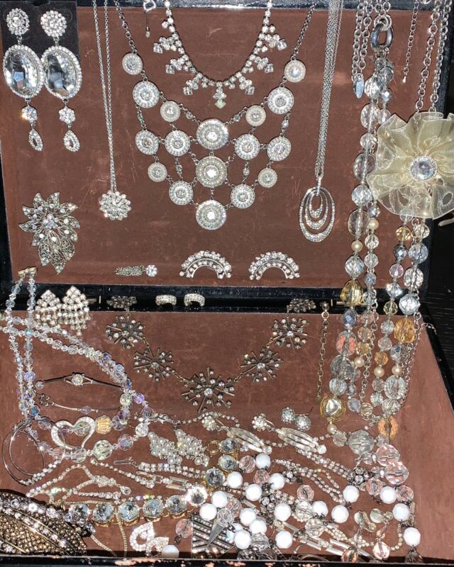Title (ebay affiliate link): Vintage Huge High End Rhinestone Jewelry Lot-Crystals-Milkglass-Kramer-LC