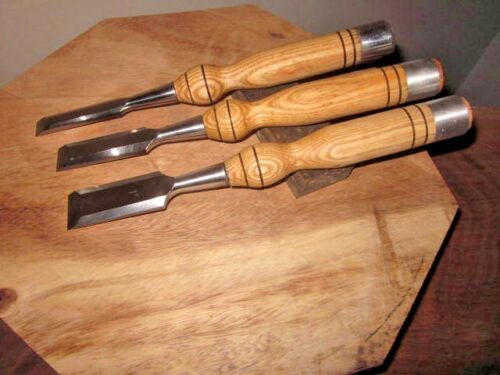 Title (ebay affiliate link): 3 piece NEW Timber Frame Wood Chisel Set Framing Chisels with Ash Handles