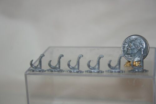 Miniature Dollhouse Eight Antique Pewter Wall or Furniture Hooks 1:12 NR
