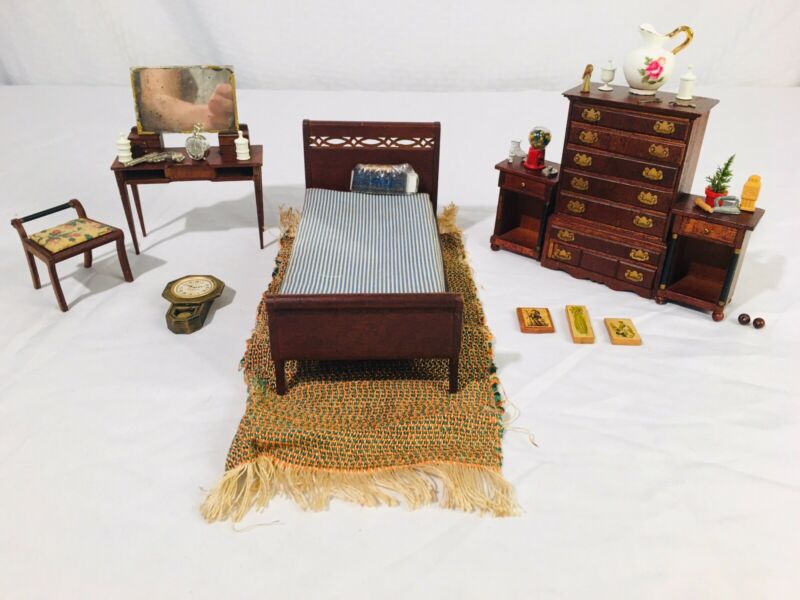 Vtg German Dollhouse Miniature Furniture Lot BedRoom Set Lundby?