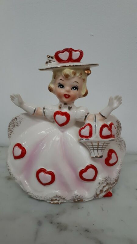 Title (ebay affiliate link): Vintage Relpo Girl With Basket Of Hearts Valentine Ceramic Planter No. A-1655