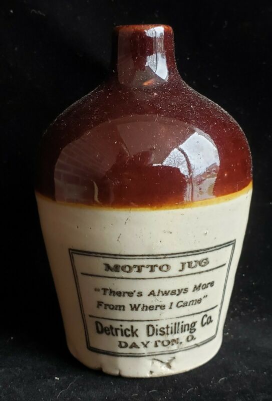 Title (ebay affiliate link): Detrick Distilling Co, Miniature Advertising Crock, Whiskey Jug, Dayton Ohio