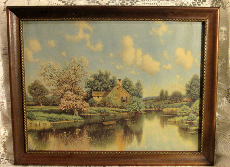 Title (ebay affiliate link): antique 1920''s print of spring landscape pond oil painting by George W. Drew