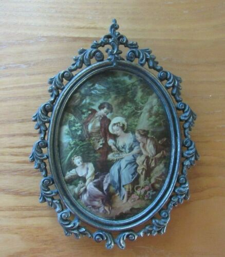 Title (ebay affiliate link): Made In Italy Victorian Wall Art VINTAGE Fabric Framed Small ITALIAN Metal Frame