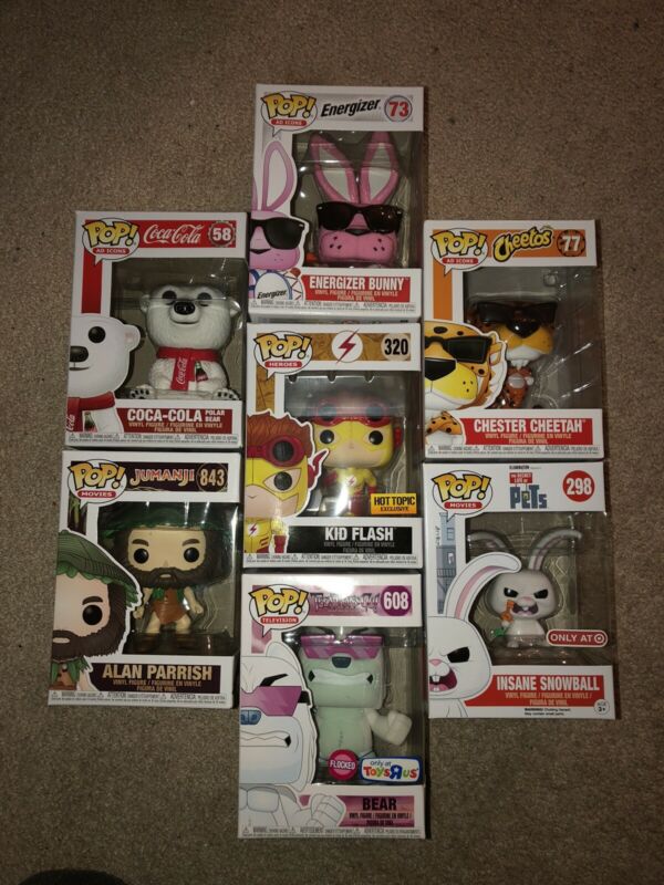 Title (ebay affiliate link): Funko Pop Lot Ad Icons Chester Cheetah Energizer Bunny Coca-Cola Bear Kid Flash