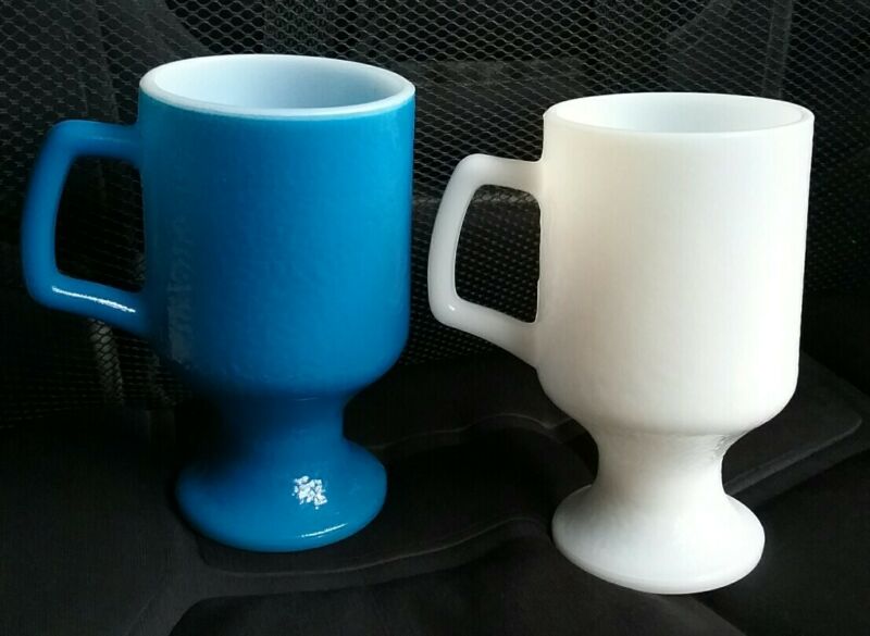 Title (ebay affiliate link): 2Vtg Blue & White Milk Glass Footed Irish Coffee Mug Tea Cup Textured Pedestal