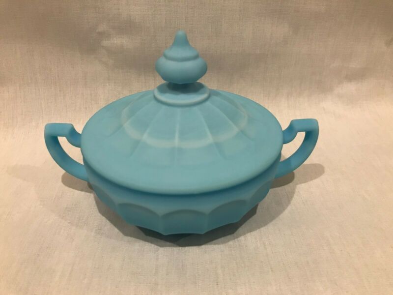 Title (ebay affiliate link): Rare Vintage Light Blue Frosted Milk Glass Candy Dish With Lid