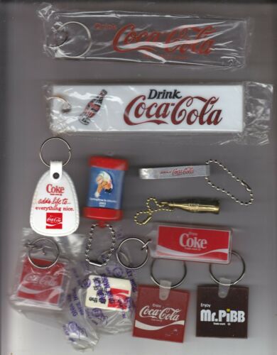 Title (ebay affiliate link): 11 DIFFERENT COCA-COLA KEY CHAINS. & KEY RINGS NICE ASSORTMENT