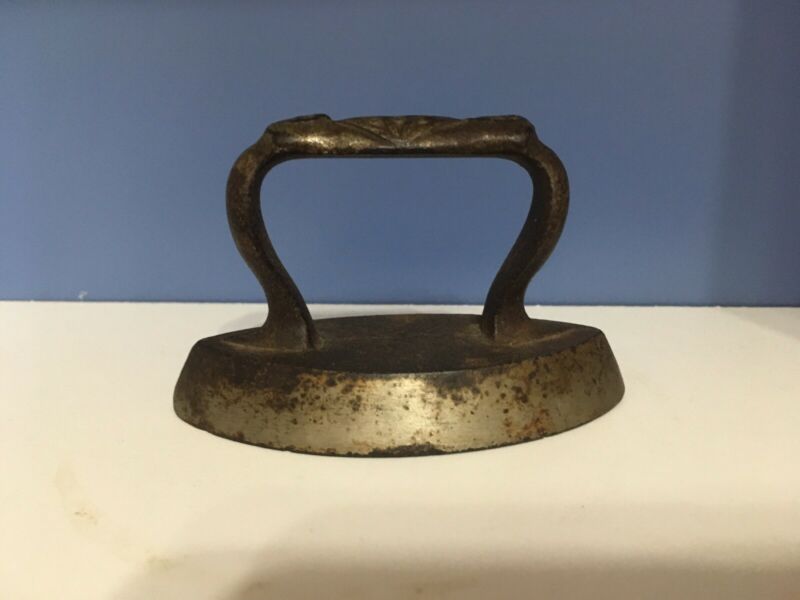Title (ebay affiliate link): Antique Mini 3.5" Cast Iron Clothes Flat Iron Ironing Presser Paper Weight
