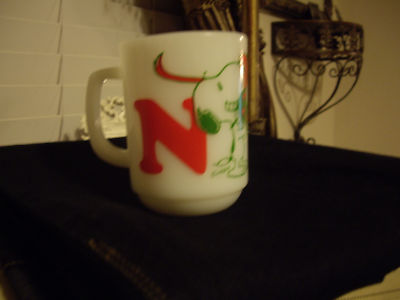 Vintage Snoopy Fire King NOEL Mug Cup Milk Glass