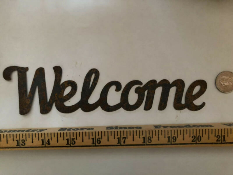 Title (ebay affiliate link): Primitive Metal Rust Rusty Welcome Word Sign Tin Craft