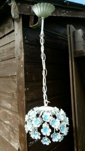 Vintage Ceiling Light Pendent Toleware Metal Flower Chandelier Floral Ball Used