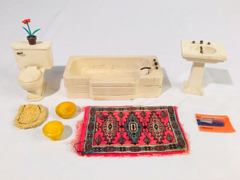 Lot Strombecker Art Deco Vintage Antique Wood Dollhouse Furniture bathroom Set 2