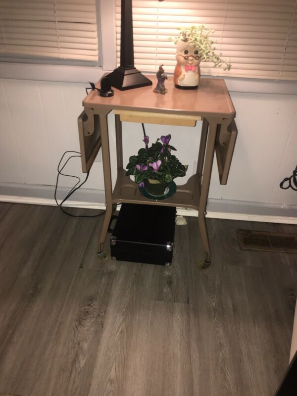 Title (ebay affiliate link): Vintage Metal MCM Mid-Century Modern Steampunk Typewriter Table Stand Industrial