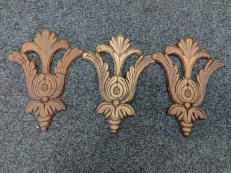 3 Vintage Antique Wood Ormolu Architectural Furniture Decoration Embellishments