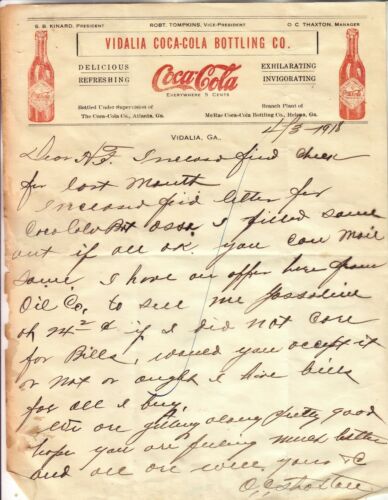 Title (ebay affiliate link): VIDALIA COCA-COLA BOTTLING COMPANY LETTERHEAD DATED 4/3 - 1918