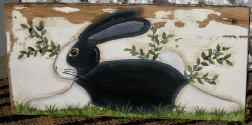 Title (ebay affiliate link): *~*PRIMITIVE*~* HP FOLK ART PRIM BLACK & WHITE BUNNY *~* RECLAIMED WOOD