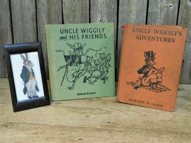2 Old Uncle Wiggily Rabbit Books + Antique Photo Frame Easter Lot