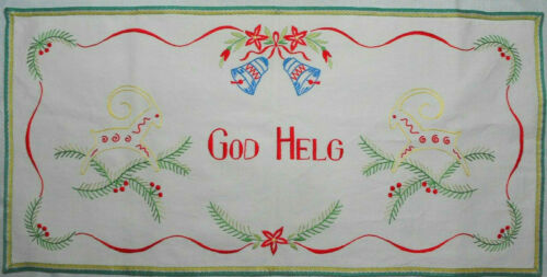 Title (ebay affiliate link): antique Swedish Xmas hand-embroidered wall hanging God Helg - Goats and bells