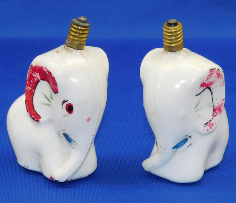 vtg Antique Lot 2 Elephant Shaped Figural Glass Christmas Light Bulb Non-Working
